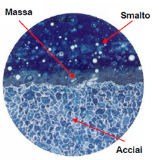 L’acciaio smaltato è un materiale composito costituito da uno strato di smalto saldamente legato al supporto metallico mediante un primo layer denominato “massa”, che ha la sola funzione di migliorare l’adesione tra l’acciaio e lo smalto sovrastante.