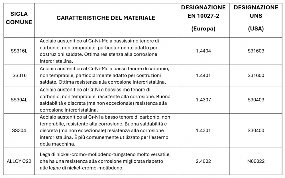Principali materiali di costruzione impiegati da Italvacuum nella realizzazione degli essiccatori sottovuoto per l’industria farmaceutica.