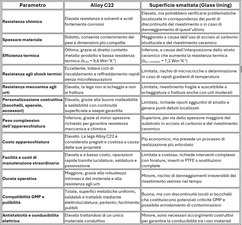Lega metallica Alloy C22 vs acciaio smaltato Glass Lining