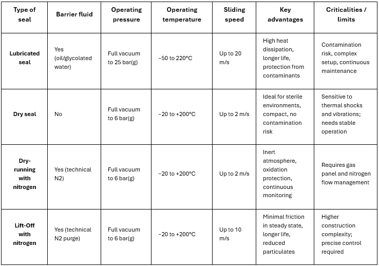 In some cases, hybrid solutions can be adopted, combining dry-running sealing elements with external cooling systems to improve thermal resistance without compromising process purity.