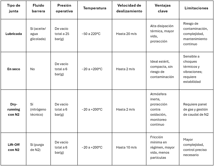 Requiere, no obstante, monitorización continua del fluido barrera y mantenimiento programado.